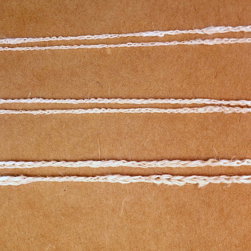 画像4枚目は1本で鎖編みをしたもの、2本取りで編んだもの